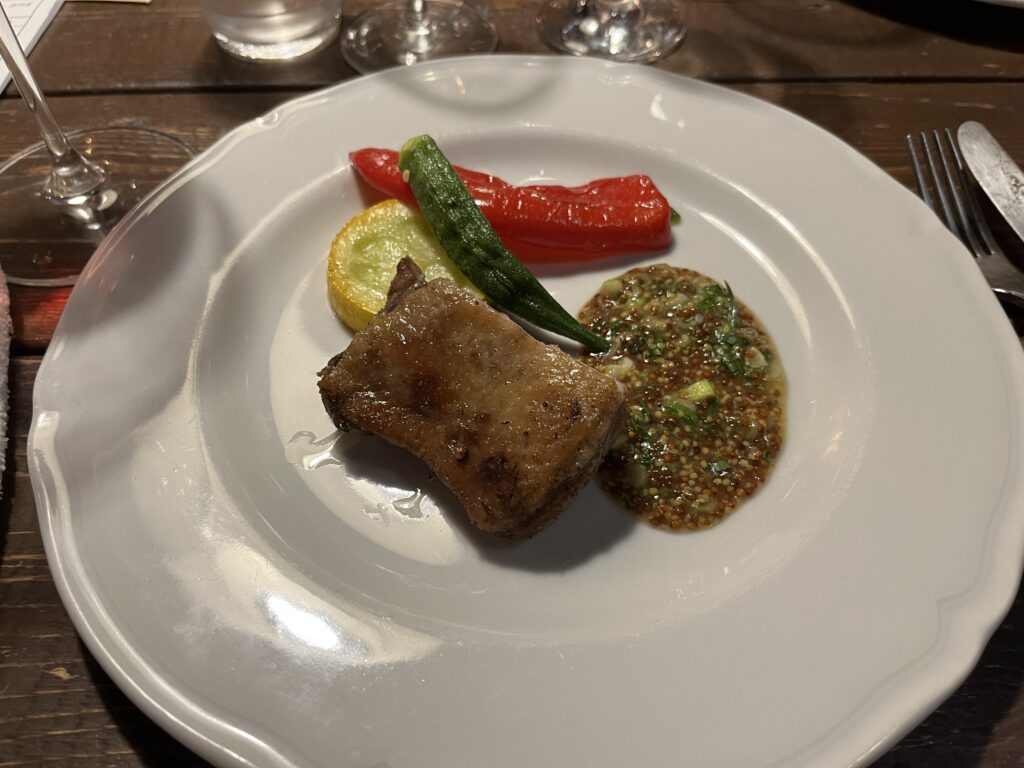 今日イチの1本でした。ワインの持ってるパワーが全然違う。しっかりとした酸に厚みのある果実味。骨格がしっかりしていてエレガント。余韻も長い。これで入門キュヴェというからトップキュヴェの味わいは想像がつかない。。