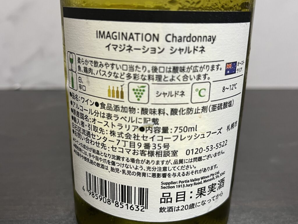 コンビニで買えるワインシリーズ。今回はセイコーマートで購入した「イマジネーション シャルドネ」をご紹介します。