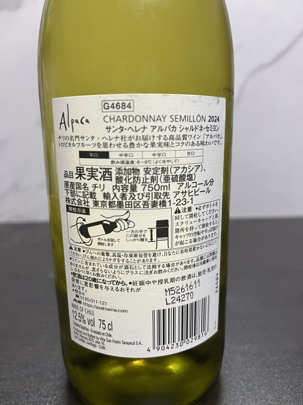 コンビニで買えるワインシリーズ。今回はローソンで購入した「アルパカ シャルドネ セミヨン 2024」をご紹介します。