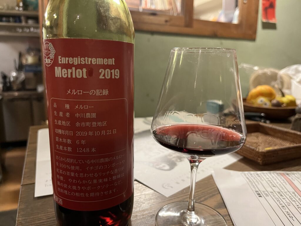 生産者は、北海道 余市の余市ワイン。北海道の地酒「千歳鶴」の日本清酒が運営するワイナリーです。ヴィンテージは2019年、品種はメルロー。
